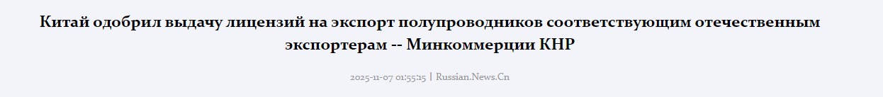 Министерство коммерции Китая оперативно одобрило заявки местных экспортеров на выдачу лицензий для экспорта полупроводников и предоставил исключения для отвечающего требованиям экспорта. Это было сделало для содействия восстановлению поставок от компании Nexperia China.