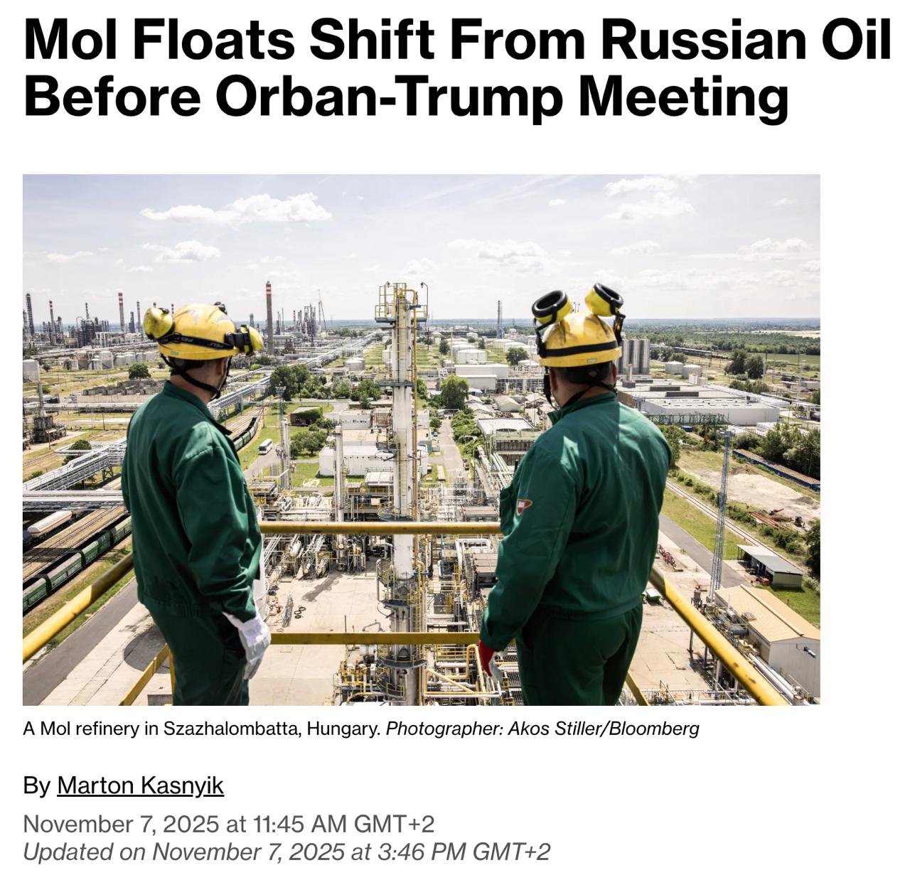 В статье отмечается, что заявление венгерского нефтяного гиганта стало важным сигналом смены позиции после многомесячной риторики Орбана о том, что у Венгрии нет альтернативы России в энергетике. И, как ожидается, на встрече с Трампом он попросит отсрочки для Венгрии по применению антироссийских санкций.