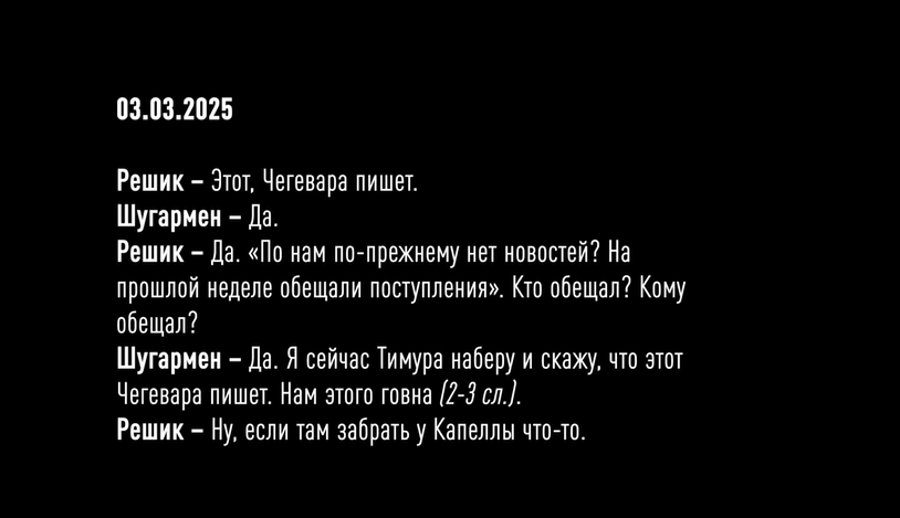 Шугармен: Да. Я сейчас Тимура наберу и скажу, что этот Че Гевара пишет. Нам этого г@вна...