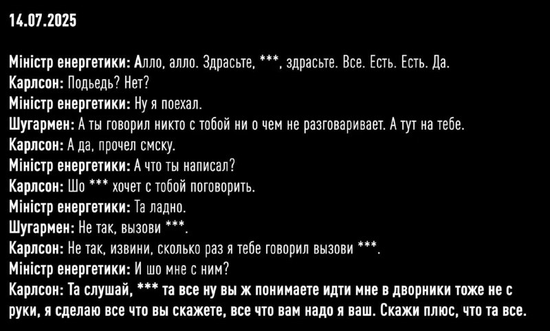 В новых записях кроме прочего Карлсон общается с министром энергетики. По информации прессы, речь идет о Германе Галущенко, который в деле указан под кличкой Профессор.