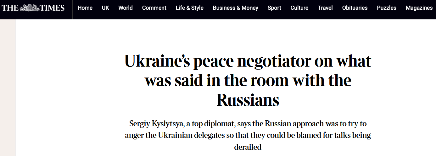 Об этом заявил первый заместитель главы МИД Украины Сергей Кислица в комментарии изданию The Times.