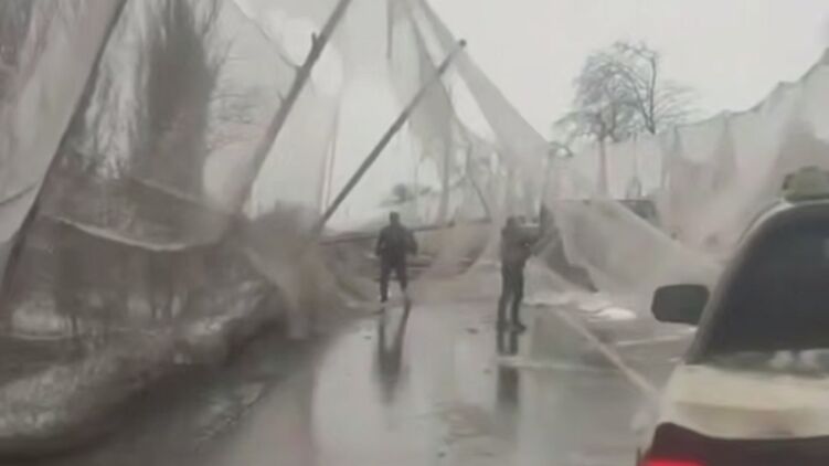 Антидроновые сетки в Украине не выдерживают первый снег и просто валятся вместе с опорами.
