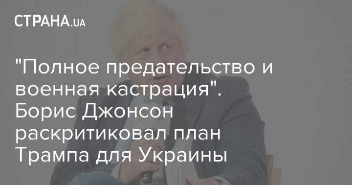 Бывший британский премьер-министр Борис Джонсон назвал план президента США Дональда Трампа об Украине "полным предательством" и "военной кастрацией".