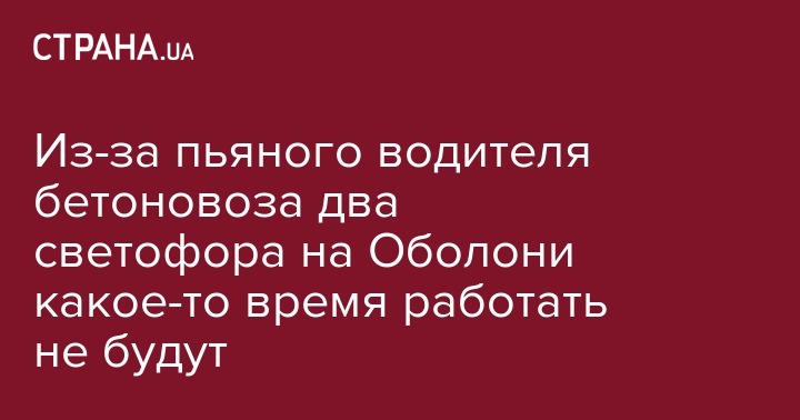 Из-за пьяного водителя бетоновоза два светофора на Оболони какое-то время работать не будут