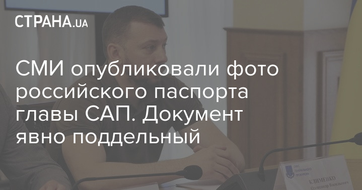 Об этом сообщают российские СМИ, публикуя, как они утверждают, фото поддельного паспорта РФ на имя Александра Васильевича Клименко, родившегося 17 сентября 1986 года. Это данные главы Специализированной антикоррупционной прокуратуры Украины. Также в паспорте вклеено его фото.