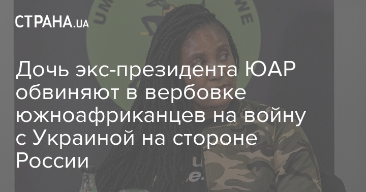 Дочь бывшего президента Южно-Африканской Республики (ЮАР) Дудузиле Зума-Самбудла обвиняется в вербовке жителей своей страны для войны в Украине на стороне РФ.