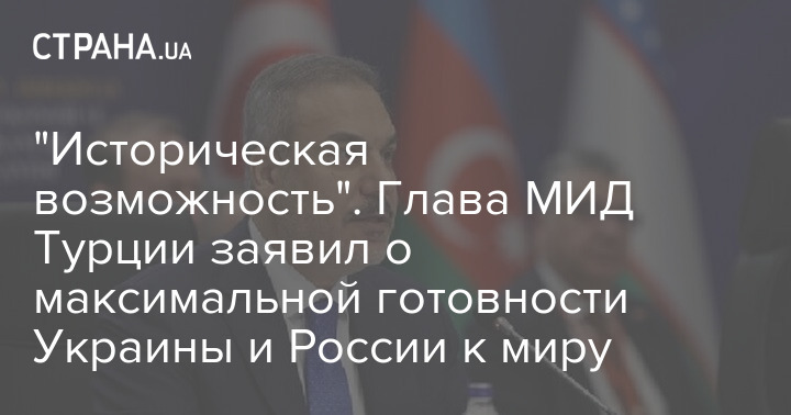 "После четырёх лет войны на истощение стороны более, чем когда-либо, готовы к миру. Они увидели масштаб человеческих страданий и разрушений и осознали пределы своих возможностей. Как мы понимаем, Путин также готов согласиться на прекращение огня и всеобъемлющее мирное соглашение при определённых условиях. Данное соглашение важно не только для прекращения войны в Украине, но и для стабильности всей Европы. В этом контексте нам следует более внимательно изучить некоторые статьи соглашения, призванного гарантировать безопасность Европы. Я рассматриваю это как историческую возможность предотвратить дальнейшие атаки", - заявил Фидан.
