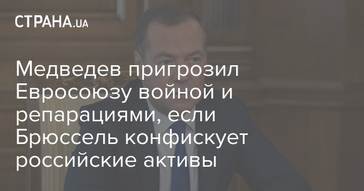 Заместитель председателя Совета безопасности Российской Федерации Дмитрий Медведев пригрозил Европейскому cоюзу репарациями и даже войной в случае конфискации замороженных активов РФ.