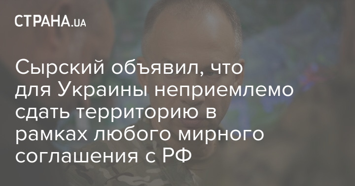 Главнокомандующий Вооруженных сил Украины Александр Сырский заявил, что для Украины неприемлемо сдать территорию в рамках любого мирного соглашения с Россией.