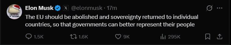 Сам Маск ответил чередой постов, в которых соглашается с критиками ЕС и призывает к его роспуску.