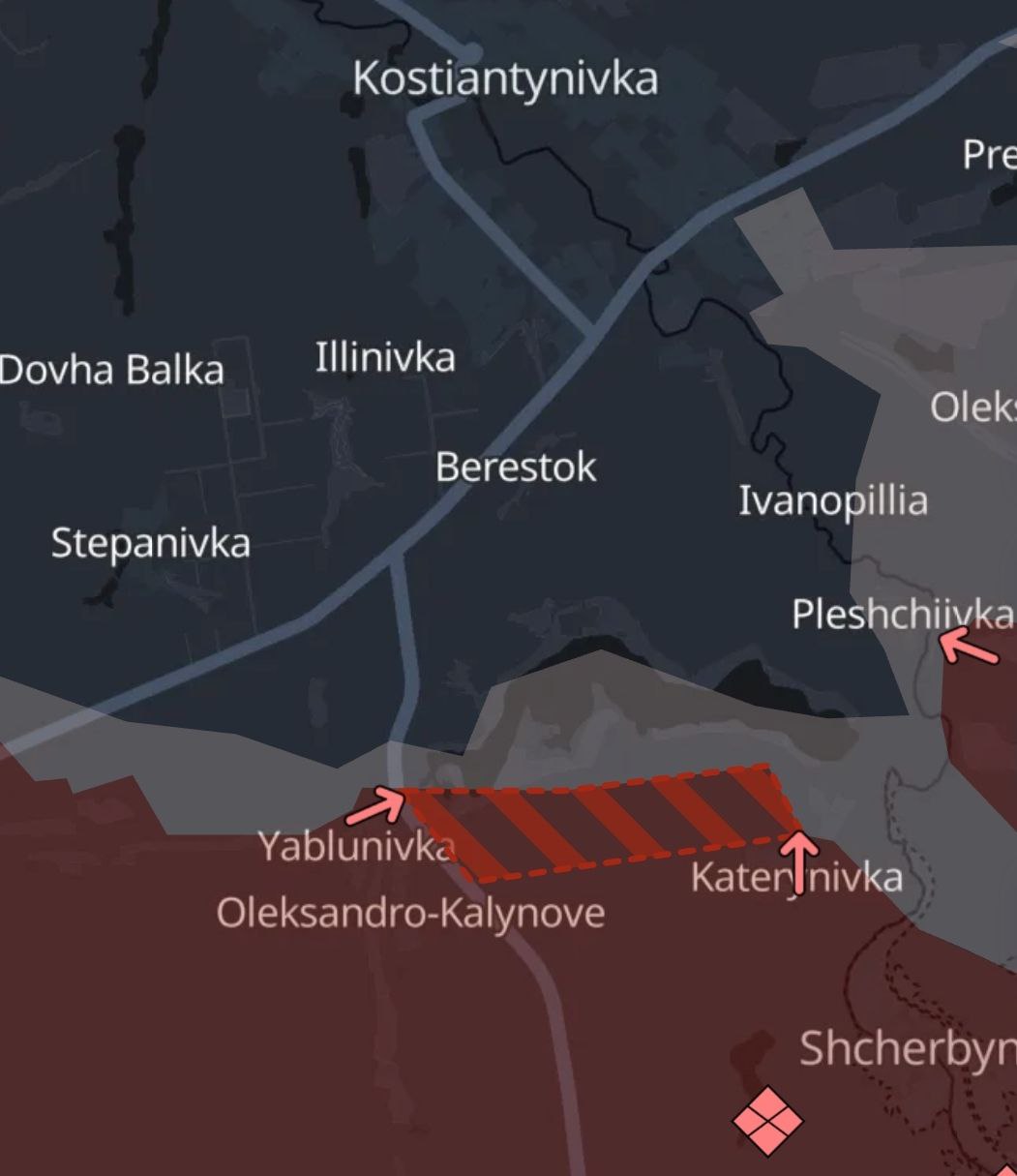 8.17 Россияне продвинулись к югу от Константиновки, а также в Мирнограде, сообщает Deep State.