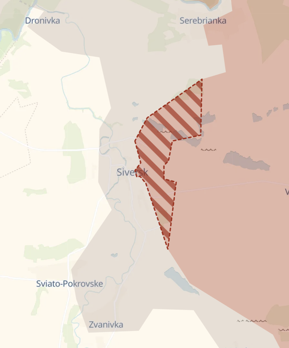 Вчера журналист Bild Юлиан Рёпке сообщил, что "украинская линия фронта в Севереске рушится". "Россияне прошли большую часть города и переправились через реку Бахмутовку на его западной окраине", - заявил он и опубликовал карту с геолокацией российского присутствия.