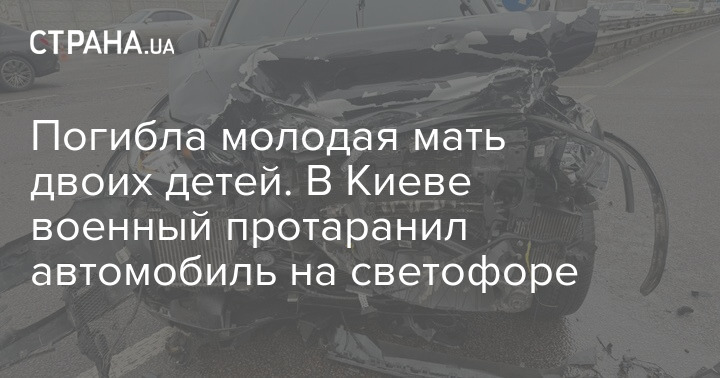 В Киеве военный протаранил сзади автомобиль, который остановился на красный свет светофора. В результате инцидента погибла молодая женщина, у неё остались двое детей.