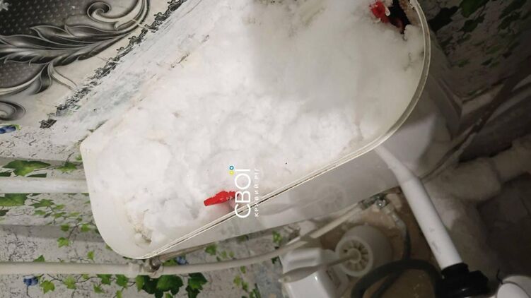 Унитазный бачок со снегом вместо воды. Фото: Телеграм
