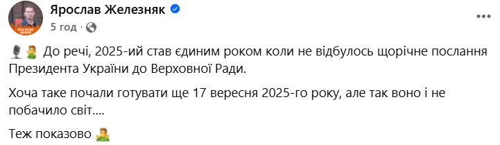 Минувший 2025 год стал единственным, когда не было ежегодного послания президента Украины к Верховной Раде.