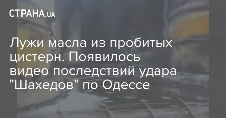На видео стоянка с масловозами покртылась слоем продукта в несколько сантиметров. Можно заметить, что струи масла бьют из повреждённых осколками цистерен.