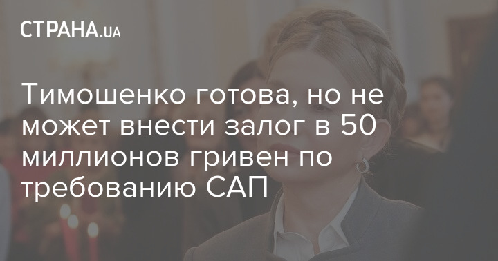 Напомним, Специальная антикоррупционна прокуратура Украины намерена требовать 50 миллионов гривен залога для Тимошенко.