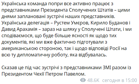 "Мы надеемся, что будет больше ясности как по тем документам, которые мы уже фактически подготовили с американской стороной, так и по ответу России на всю ту дипломатическую работу, которая происходила", - пишет Зеленский.