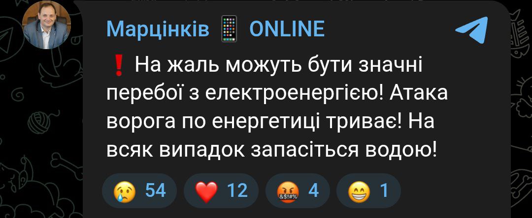 Мэр Мвано-Франковска предупреждает о значительном дефиците энергии, а также призывает запасаться водой.