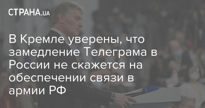 В Кремле уверены, что замедление Телеграма в России не скажется на обеспечении связи в армии РФ