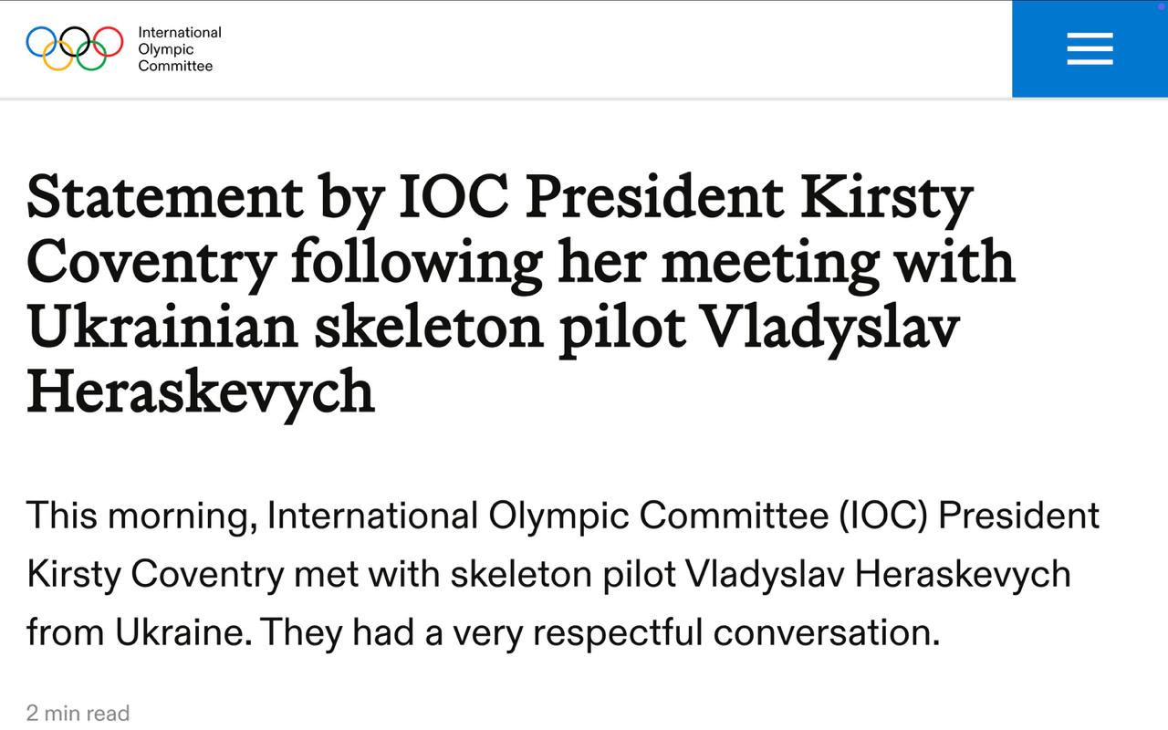 Об этом заявила президент МОК Кирсти Ковентри, её слова опубликованы на сайте комитета.