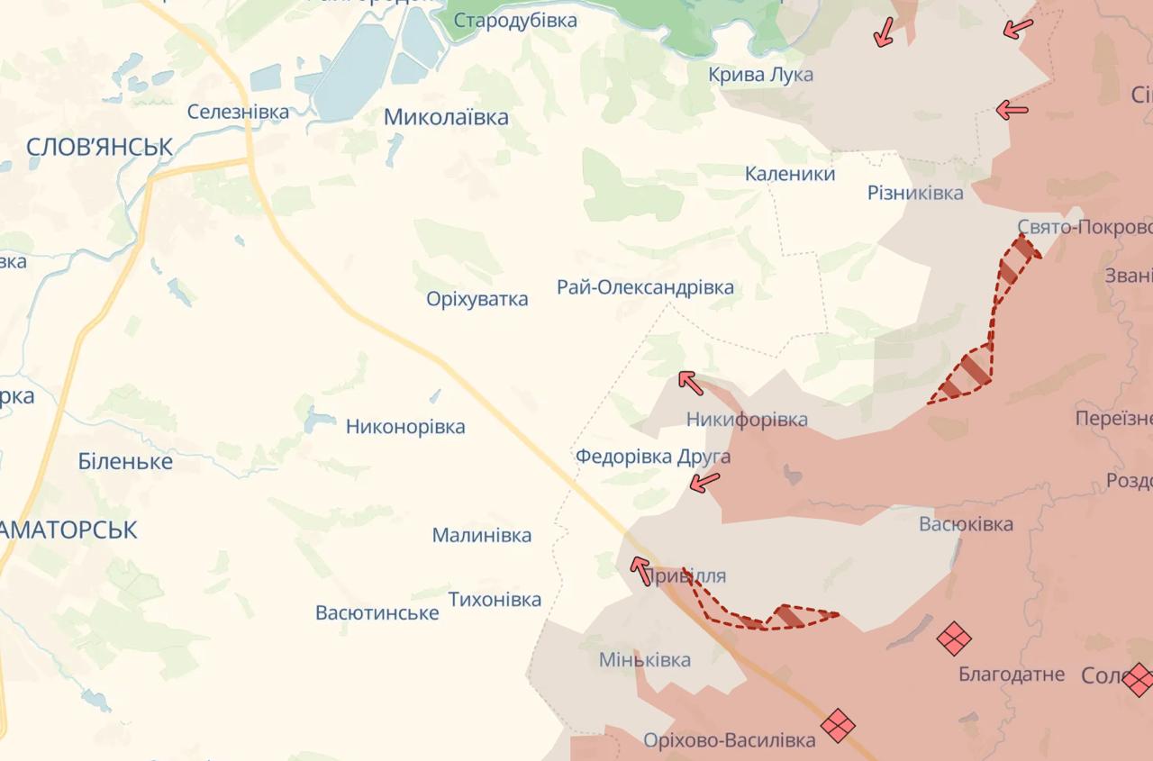 Армия РФ продвинулась около Резниковки, Пазено и Приволья на Славянском направлении, сообщает DeepState.