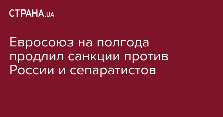 Евросоюз продлил на 6 месяцев санкции против России и сепаратистов в Украине, которые ставят под угрозу территориальную целостность Украины. Об этом в в Twitter сообщил журналист "Радио Свобода" в Брюсселе Рикард Йозвяк.