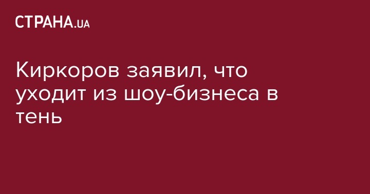 Киркоров заявил, что уходит из шоу-бизнеса в тень