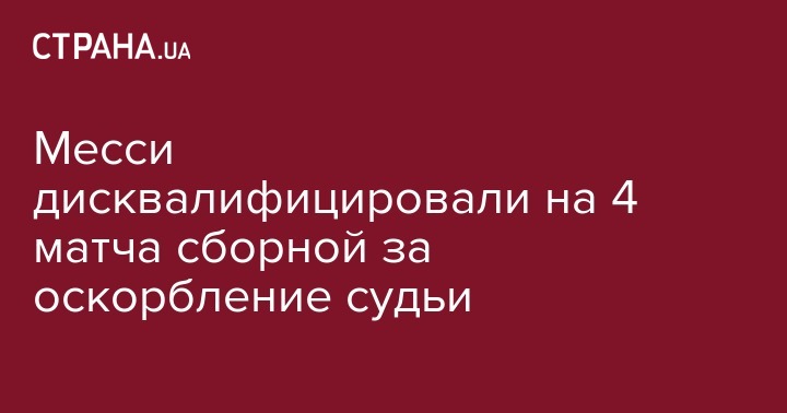 Речь идет об инциденте в матче между сборными Аргентины и Чили, который прошел 23 марта в рамках отборочной кампании ЧМ-2018. По ходу игры Месси высказал оскорбительные слова в адрес помощника рефери.