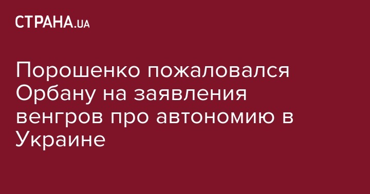 "Президент Украины выразил обеспокоенность заявлениями венгерских чиновников о создании отдельных территориальных автономий… Премьер-министр Орбан отметил поддержку территориальной целостности Украины и немедленного предоставления украинцам безвизового режима с Европейским Союзом", - сообщает пресс-служба главы государства.