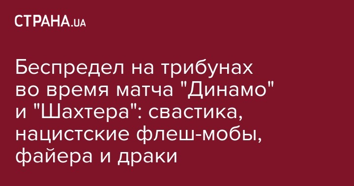 Беспредел на трибунах во время матча "Динамо" и "Шахтера": свастика, нацистские флеш-мобы, файера и драки
