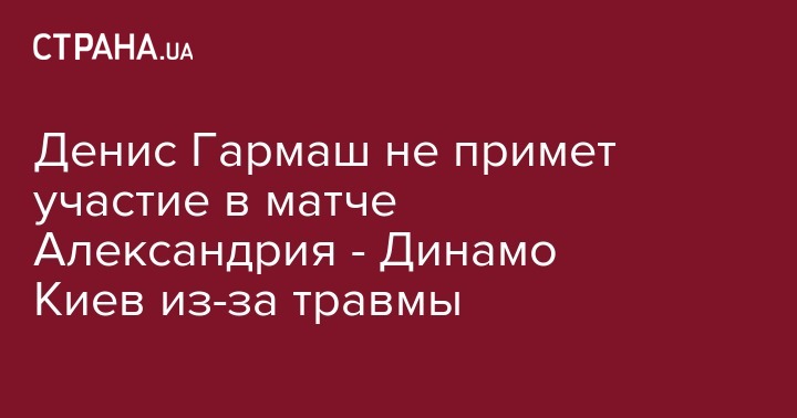 Денис Гармаш не сможет принять участие в матче Александрия - Динамо Киев, который состоится в субботу, 2 апреля. Об это рассказал врач киевлян Леонид Миронов, передает сегодня "Корреспондент".