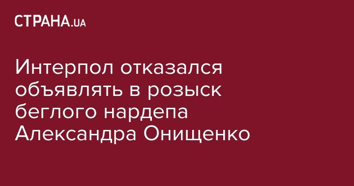 Интерпол отказался объявлять в розыск депутата Верховной Рады Украины Александра Онищенко, который подозревается в организации схемы по хищению средств при добыче и продаже природного газа, сообщает интернет-издание "Украинская правда" со ссылкой на пресс-секретаря Нацполиции Украины Ярослава Таркало.