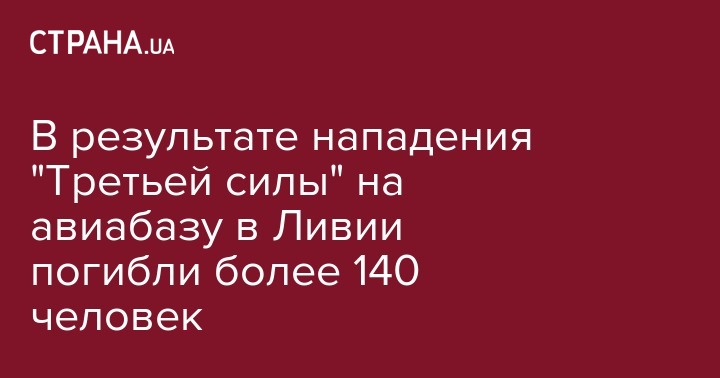 В результате атаки на авиабазу у города Брак Аль-Шати на юге Ливии погиб 141 человек. Об этом сообщает Reuters.