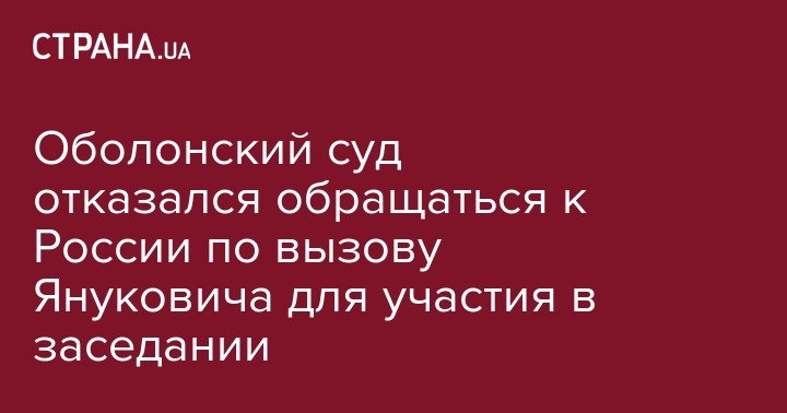"Коллегия судей решила не обращаться за международной правовой помощью к РФ. Мотивы были ранее изложены, учитывая суть предъявленного Януковичу обвинения. Вместе с тем Виктор Янукович был вызван на данное судебное заседание надлежащим образом, были направлены повестки по всем известным адресам, было сделано сообщение в "Урядовый курьер", оно было опубликовано, также была осуществлена публикация на сайте Оболонского районного суда Киева", - рассказал судья.