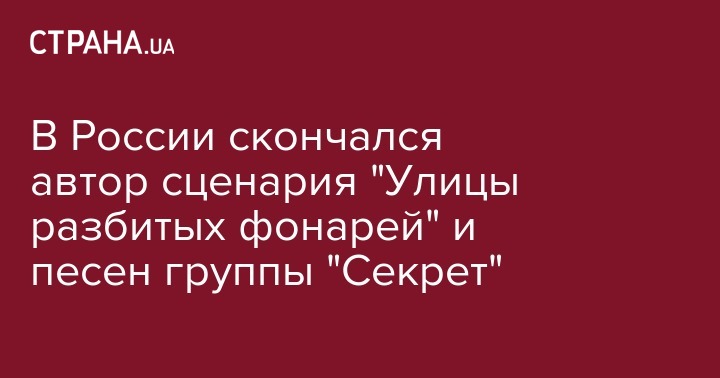 В России скончался автор сценария "Улицы разбитых фонарей" и песен группы "Секрет"