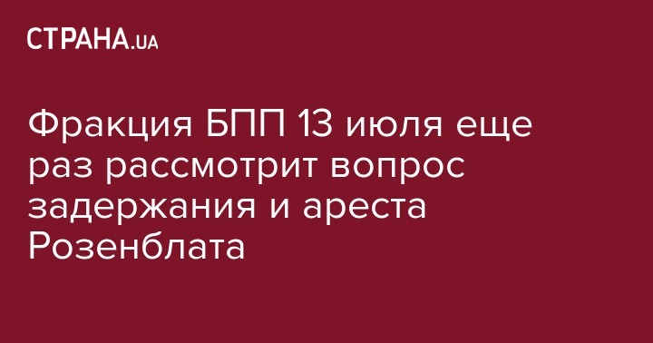 В четверг, 13 июля, состоится дополнительное заседание фракции "Блока Петра Порошенко", на котором будет обсуждаться вопрос о предоставлении согласия на задержание и арест Борислава Розенблата.