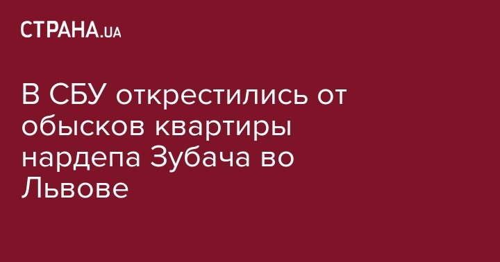 Как сообщала "Страна", во фракции "Самопомощь" заявили, что во Львове в квартире народного депутата от фракции "Самопомич" Любомира Зубача СБУ проводит обыск. Также отмечено, что после дисскусии с сотрудниками СБУ о "незаконности попытки обыска", они отказались от своих намерений.