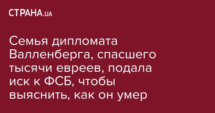 Семья дипломата Валленберга, спасшего тысячи евреев, подала иск к ФСБ, чтобы выяснить, как он умер