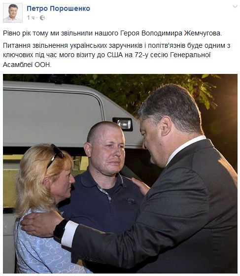 Президент Украины Петр Порошенко в ходе визита в Соединенные Штаты Америки с целью участия в 72-й сессии Генеральной ассамблеи ООН намерен поднять вопрос освобождения украинских заложников и политзаключенных. Об этом глава государства написал на своей странице в Facebook.