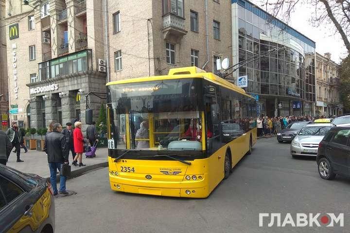 На Майдане Независимости в Киеве произошло перегрузки троллейбуса за большого количества пассажиров. Как сообщает  "Главком", в троллейбус 16-го маршрута зашло столько людей, что он просто "сел" днищем на дорогу. Водитель попросил пассажиров выйти, чтобы разгрузить троллейбус. Около десятка человек  согласились выйти и ждать следующего троллейбуса.