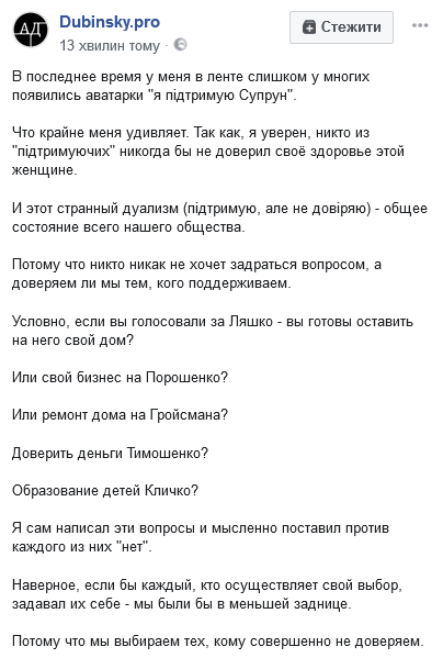 В последнее время у меня в ленте слишком у многих появились аватарки "я підтримую Супрун".