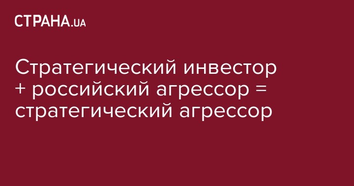 Стратегический инвестор + российский агрессор = стратегический агрессор.