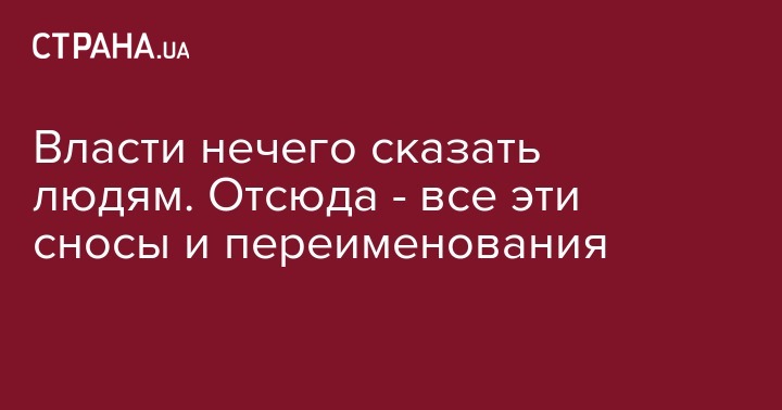 Снос памятников, переименование улиц, бесконечное педалирование языка, атмосфера вражды, доносительства и ненависти, поиск врагов среди украинцев (ведь всех, кто критикует власть, автоматом записывают в вату, агенты Кремля и т.д.) - эта вся срань свидетельство только одного. Власти нечего сказать украинцам.
