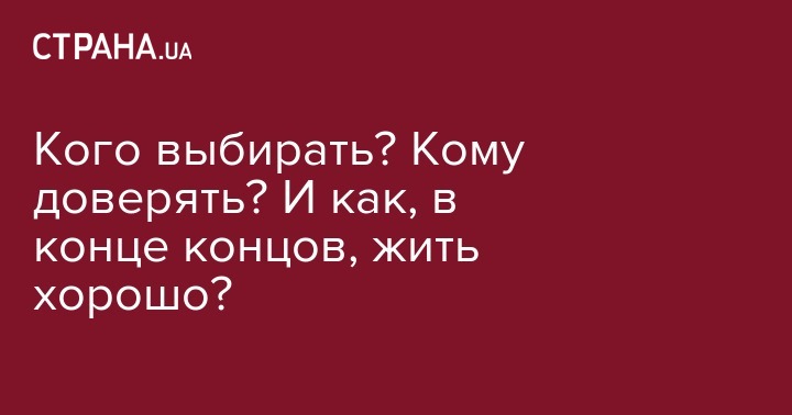 Также КМИС пытался ответить на вопрос, Кому в Украине жить хорошо?. Итак, 82% украинцев оценивают социально-экономическую ситуацию в стране как плохую. Как хорошую – 0,9%. На вопрос Кто виноват?, 78,6% респондентов выбрали вариант «некомпетентные и коррумпированные государственные деятели, которые находятся у власти», еще 5,6% выбрали Путина ("военная агрессия России"). Ну, и Что делать? 52,6% респондентов считают, что для настоящих изменений в Украине нужно одновременно менять и личности руководителей, и правила, по которым живет общество. 22,1% считают, что для изменений должны измениться личности руководителей, 14,7% - что сначала надо менять правила жизни общества. А 2,5% считают, что ничего менять не надо. Именно они сейчас будут баллотироваться. :)