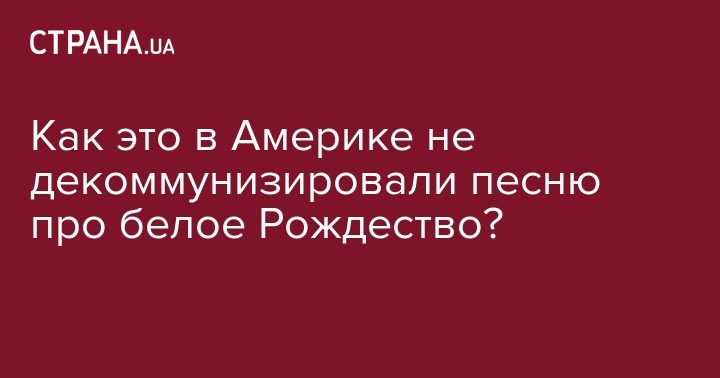 Не могу понять, почему в США до сих пор не декоммунизировали рождественскую песню "White Christmas" - "Белое Рождество".