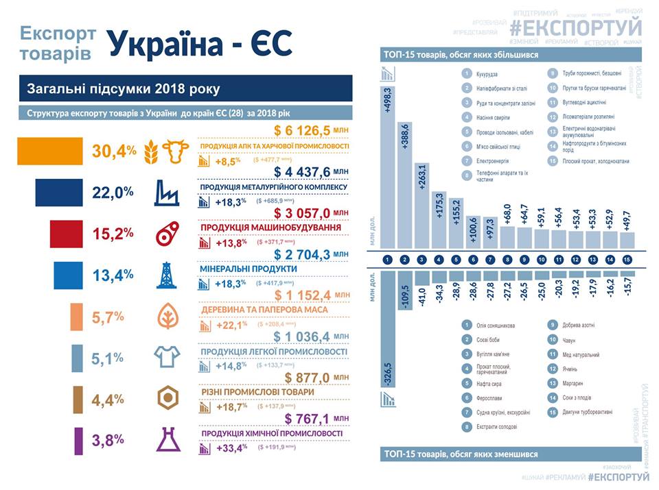 Экспорт Украины в ЕС - кукуруза, стальные заготовки, руда, древесина.