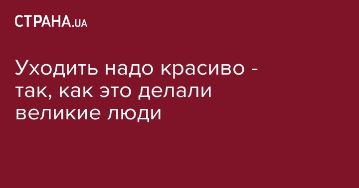 Что не говорите, а эстетика ухода государственного деятеля очень важна. Впрочем, как и антиэстетика неухода.