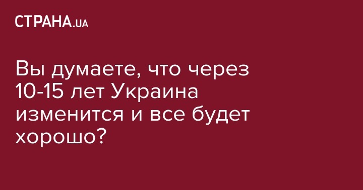 Вам 25-30 лет и вы сейчас думаете, что через 10-15 лет Украина изменится и будет все хорошо и правильно?