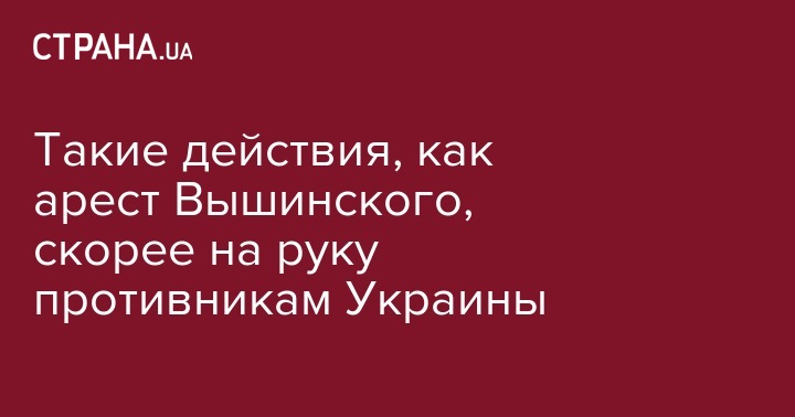 И с учетом всего этого, такие действия, как арест Вышинского, на руку скорее противникам Украины - ведь такие действия “уравнивают” позиции сторон. И международное сообщество, критикующее Россию за арест Сенцова, также критикует и Украину за арест Вышинского.